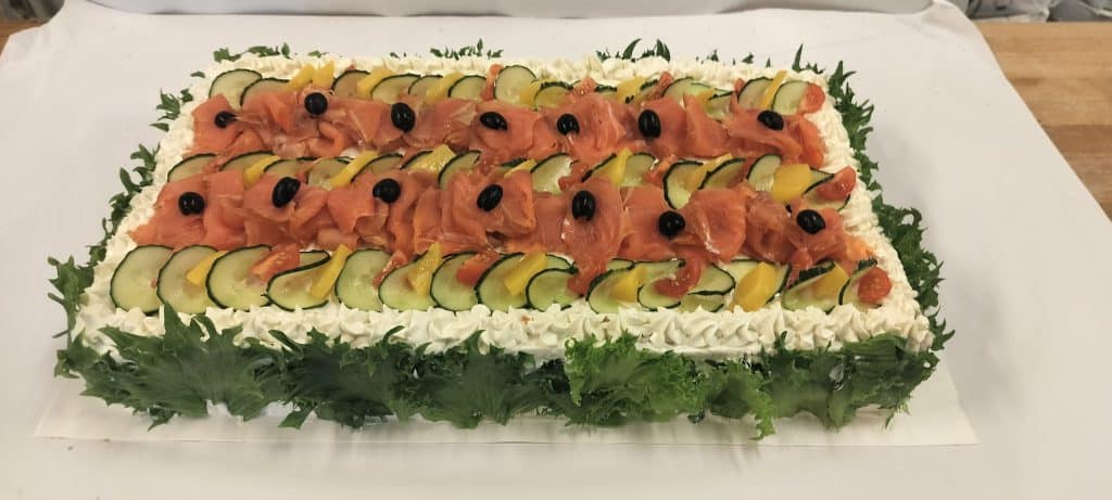 Voileipäkakkumaut: kinkku, kala(tonnikalatäyte), kasvis ja täyslohi-munavoi